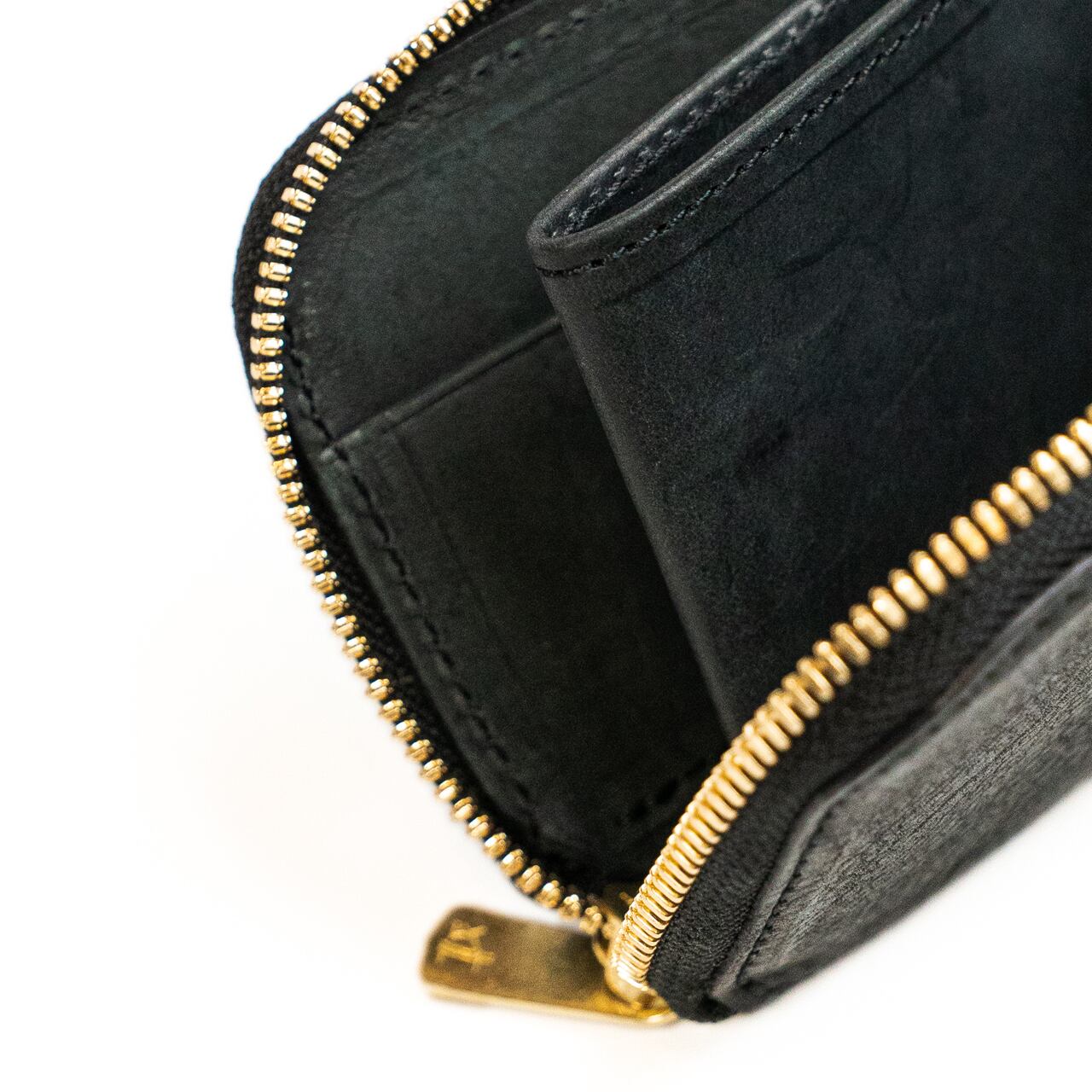 ウォレット、キーホルダーどちらもシュリンクレザーを採用。シュリンクレザーの大きな特徴は革表面のシボで見た目もやわらかく上品な雰囲気があります。ファスナーにはYKK最高級のEXCELLAを採用しており耐久性にも優れています。